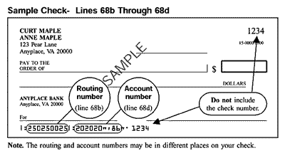 Note: If you do not want your refund directly deposited into your account, draw a line through the boxes on lines 70b and 70d.